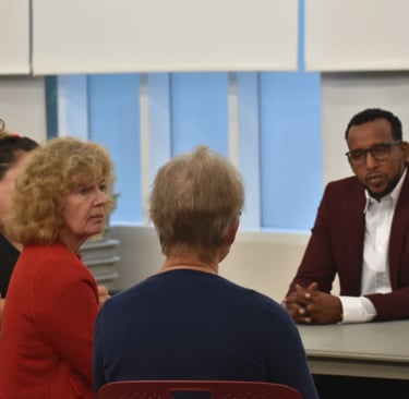 Amin Ali spoke with voters during a meet and greet hosted by the League of Women Voters of St. Cloud on Tuesday, Sept. 30.